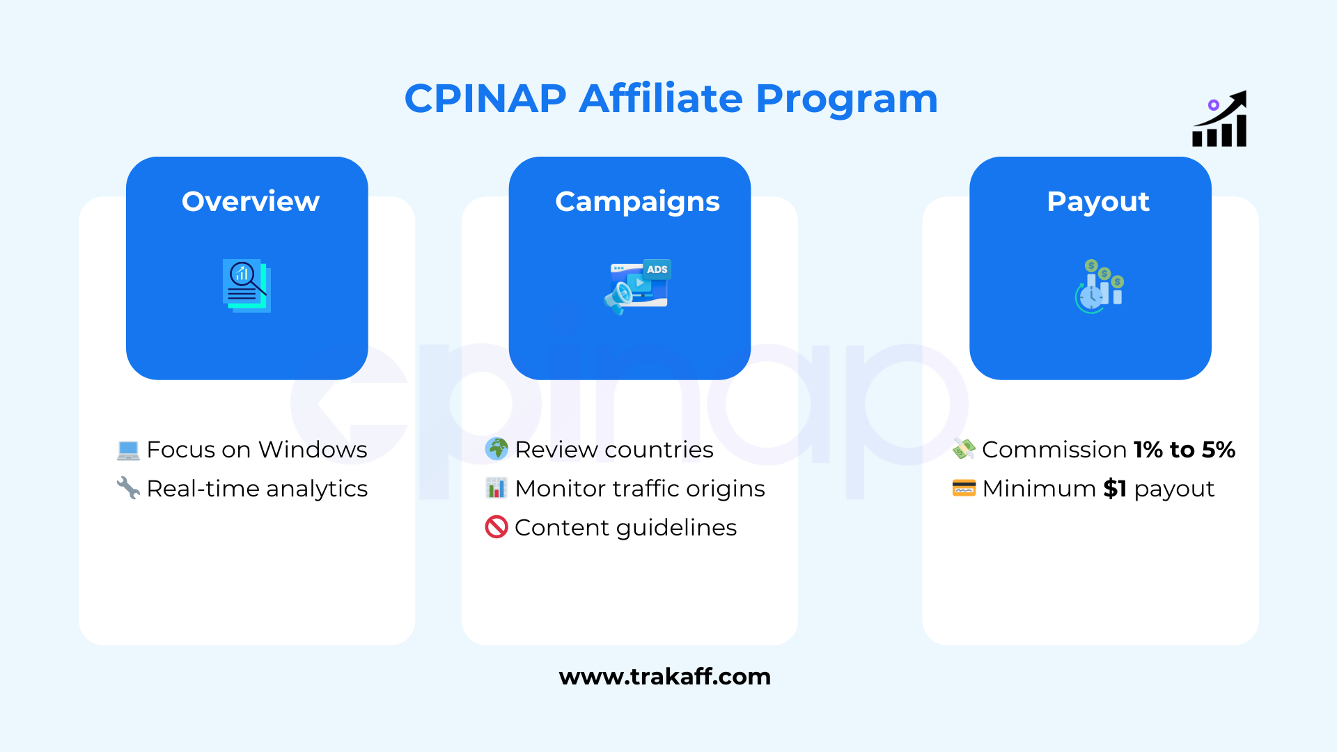 Market affiliates find CPINAP Affiliate Program appealing because users earn daily payments with 5% commission rate and minimum cashout requirement set at 1 dollar.